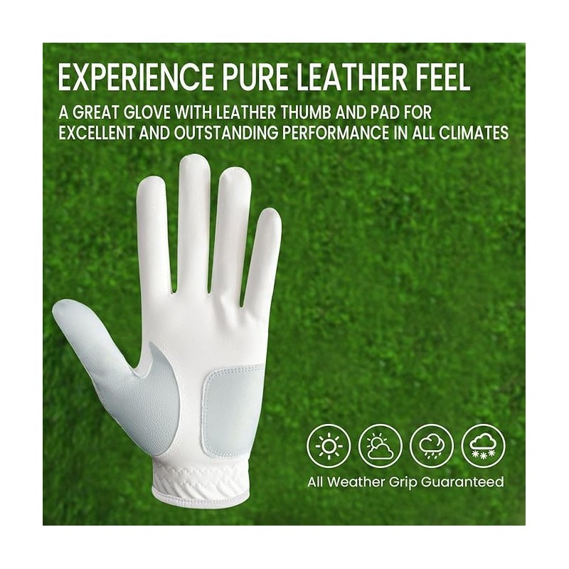 • High Quality Material And Comfortable Design: Premium Cabretta Leather Thumb And Padded Provide Soft And Comfortable Feel For All Golfers. Breathable Small Holes Around Fingers Provide Quick Drying Comfort;