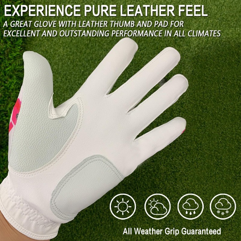 - Design and Functionality: Our golf gloves feature strategically placed Lycra Spandex on the back of the hand and fingers for flexibility and breathability, with a new printing design that's popular among female golfers. The removable fashionable ball marker comes with a strong magnet to prevent it from falling off, offering a quick and easy solution for marking your balls.