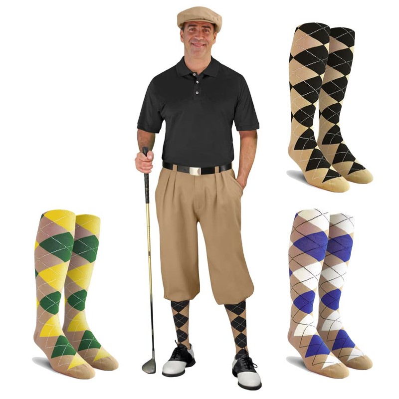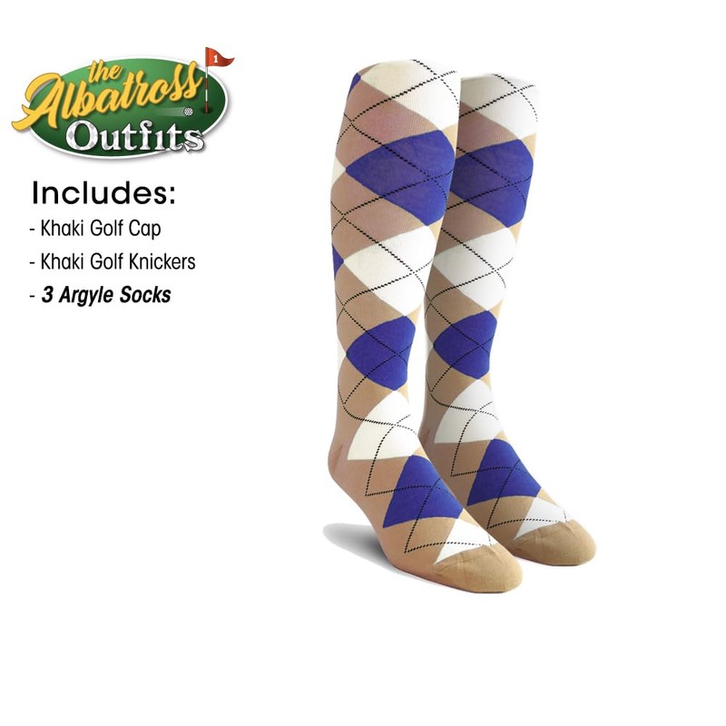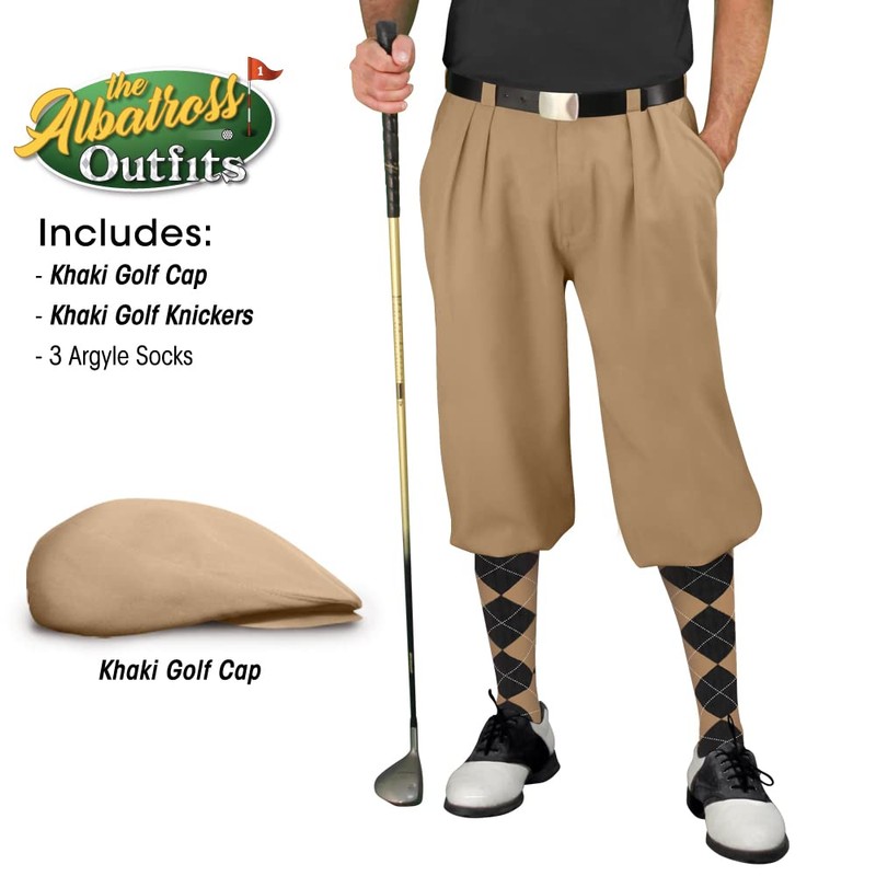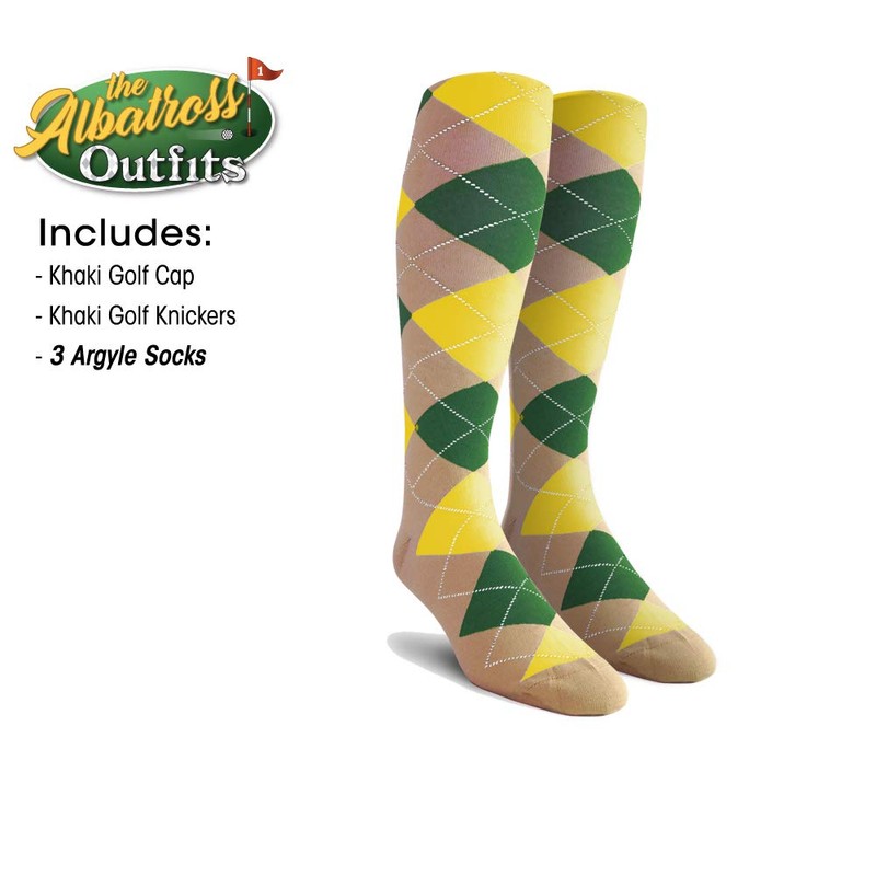 Golf Knickers Mens Albatross Golf Outfit - Khaki - Golf Cap, 3 Argyle Socks -...