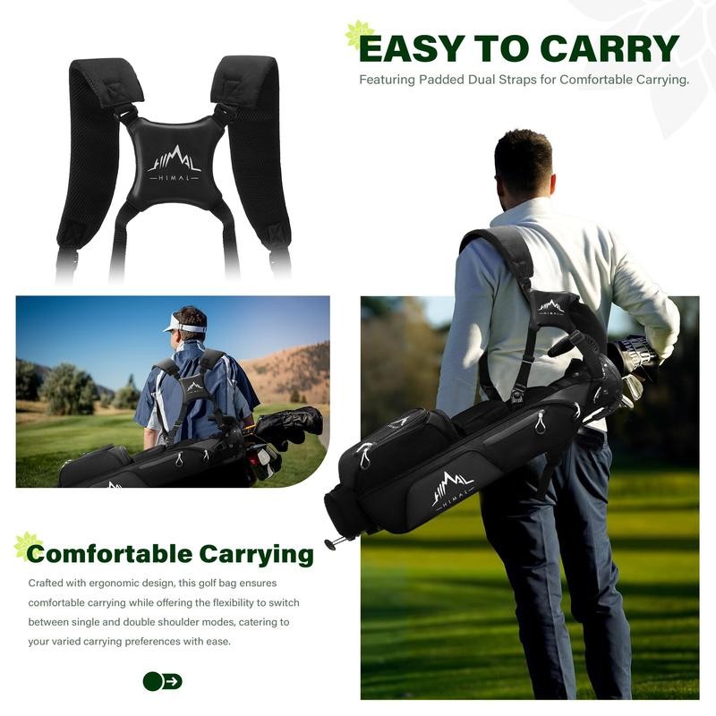 • DURABLE DUAL SHOULDER STRAPS - Offers a stable and comfortable method to tote your golf clubs around the course. You only need to carry 4-5 clubs to practice.Carry it with the adjustable dual shoulder straps or with the convenient carry handle