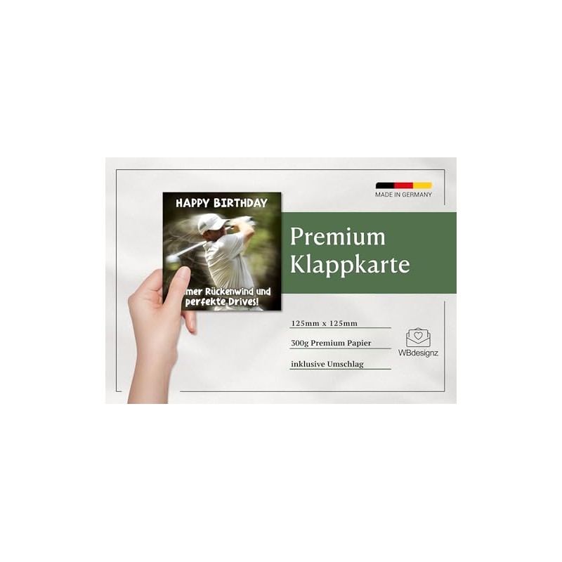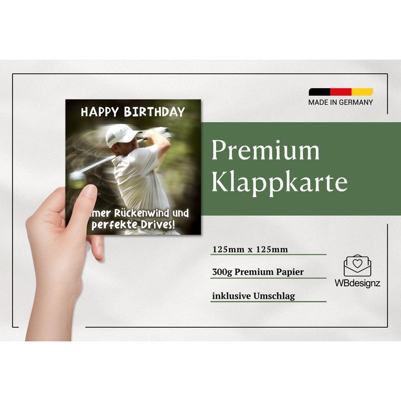 Golf Lover Birthday Card with Envelope - Greetings Card for Golfers "Always Tailwind and Perfect Drives" Birthday Card for Golf Enthusiasts Birthday Card (125 x 125 mm)