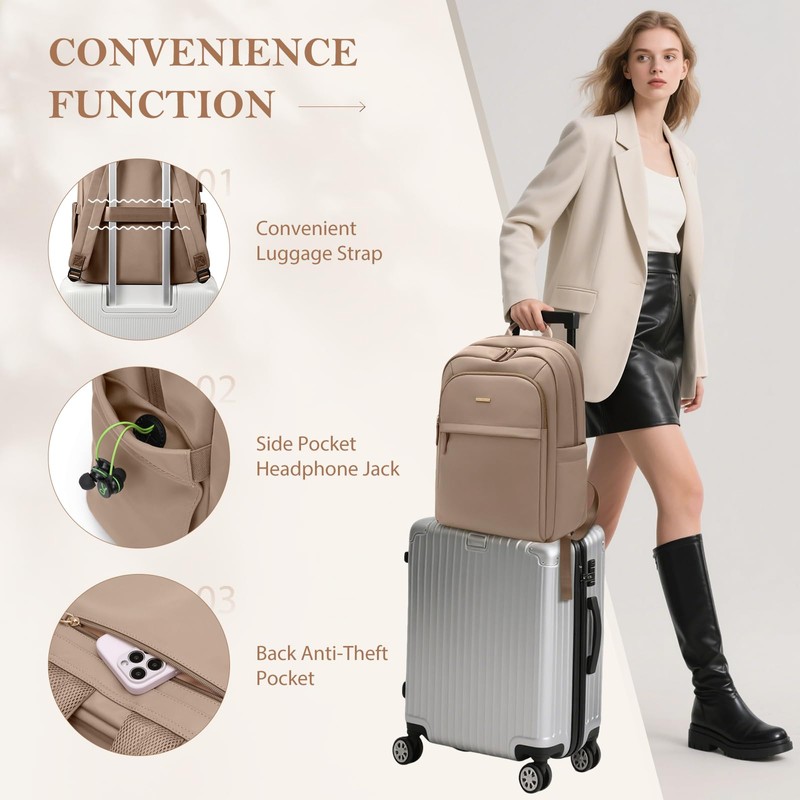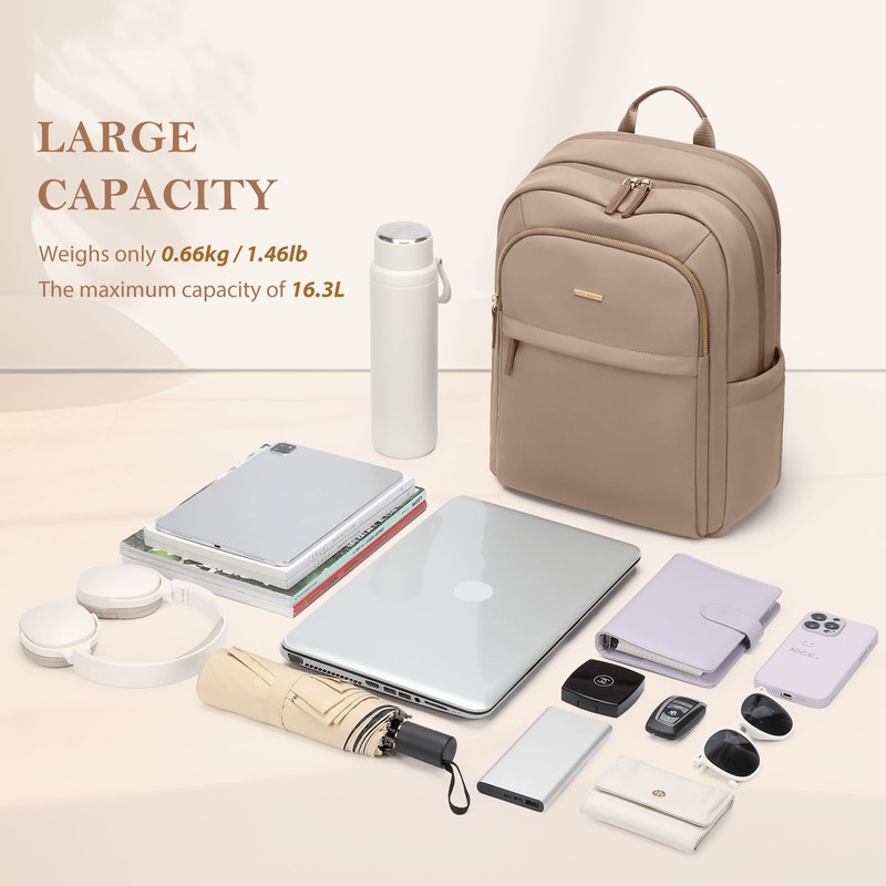 - 【Upgraded Fabric】Durable and waterproof, this womens backpack is made of splash-proof Oxford fabric and premium superfiber synthetic leather, this travel backpack ensures that your items stay dry and prevents any leaks or moisture from affecting your other items. This laptop bag can withstand everyday wear and tear, and reinforced stitching ensures long-lasting durability.