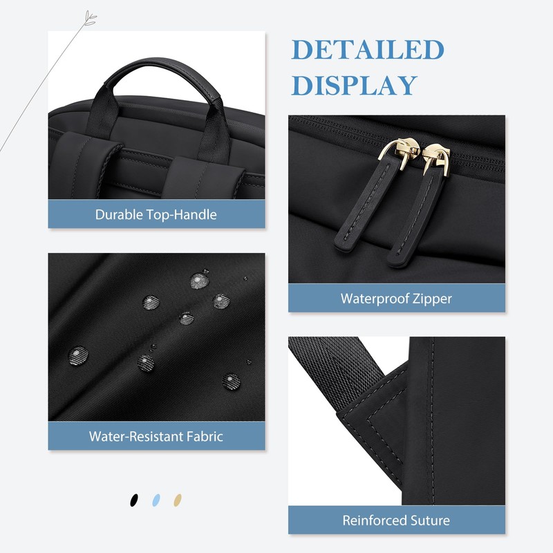 - 【Upgraded Fabric】Durable and waterproof, this womens backpack is made of splash-proof Oxford fabric and premium superfiber synthetic leather, this travel backpack ensures that your items stay dry and prevents any leaks or moisture from affecting your other items. This laptop bag can withstand everyday wear and tear, and reinforced stitching ensures long-lasting durability.
