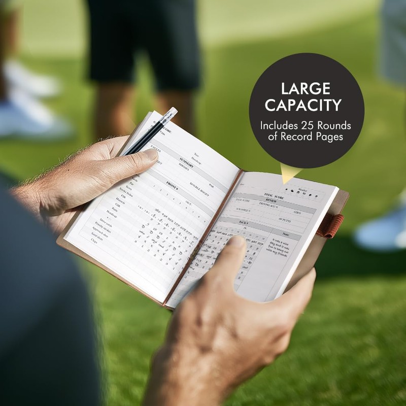 - 【Valuable & Reusable】This golf score book comes with a pencil featuring an eraser tip for convenient recording of scores. The notebook can fully record 25 rounds of play, and once filled, historical data can be erased using the eraser for reuse, making it practical