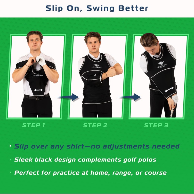 - QUICK AND EASY TO USE – Slip it over any shirt, and you're ready to train instantly. The sleek black design blends seamlessly with your golf polo for a polished look, making it ideal for quick practice sessions at home, the range, or on the course—no adjustments needed.