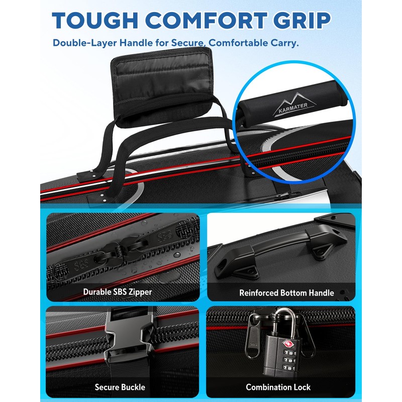- 【SBS Zippers & Built-In TSA Lock】The durable SBS zipper design minimizes wear and tear and ensures your golf travel case can withstand frequent use. It also includes a built-in TSA-approved combination lock for added security and travel convenience.
