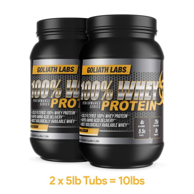 • Two 5 pound tubs of Chocolate, Vanilla or Strawberry 100% whey protein powder