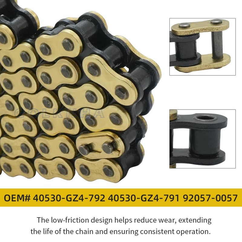 - 🏍️PREMIUM 428H CHAIN CONSTRUCTION: The 428H drive chain features a robust design with seamless small tubes, offering exceptional strength and long-lasting durability. Its gold outer plate and blue inner plate are crafted for maximum res istance to wear