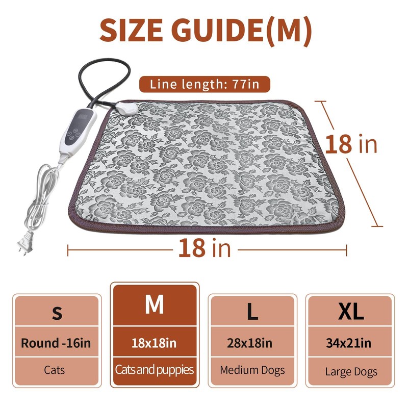 - Upgrade the pet mat: Cat Heating Pad 18 x 18 inches (for newborn kittens and puppies, adult cats)+ Intelligent temperature controller with automatic shut-off. Reinforced interface + wire rope for more safety.