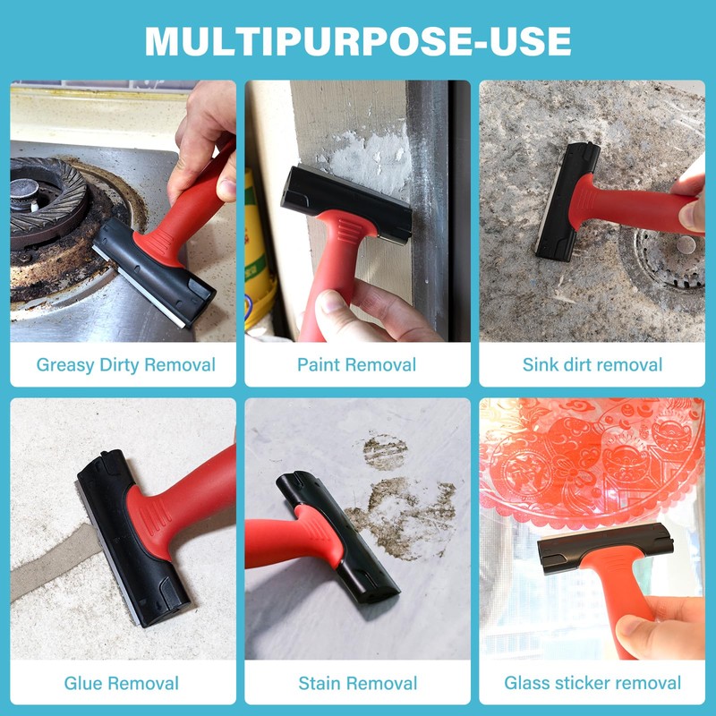 • MULTIFUNCTIONAL CLEANING SCRAPER TOOL SET: These sticker scraper tool is widely used to remove glue, vinyl, adhesives, debris, decals, signs, glue, stickers, labels, grease, and painting glass, car, enamel, wall, ceramic, tile, floor, metal and other surfaces. Also, the metal paint scraper from glass can clean food residues on the cooktop, ovens, induction cooker and glass top stoves.