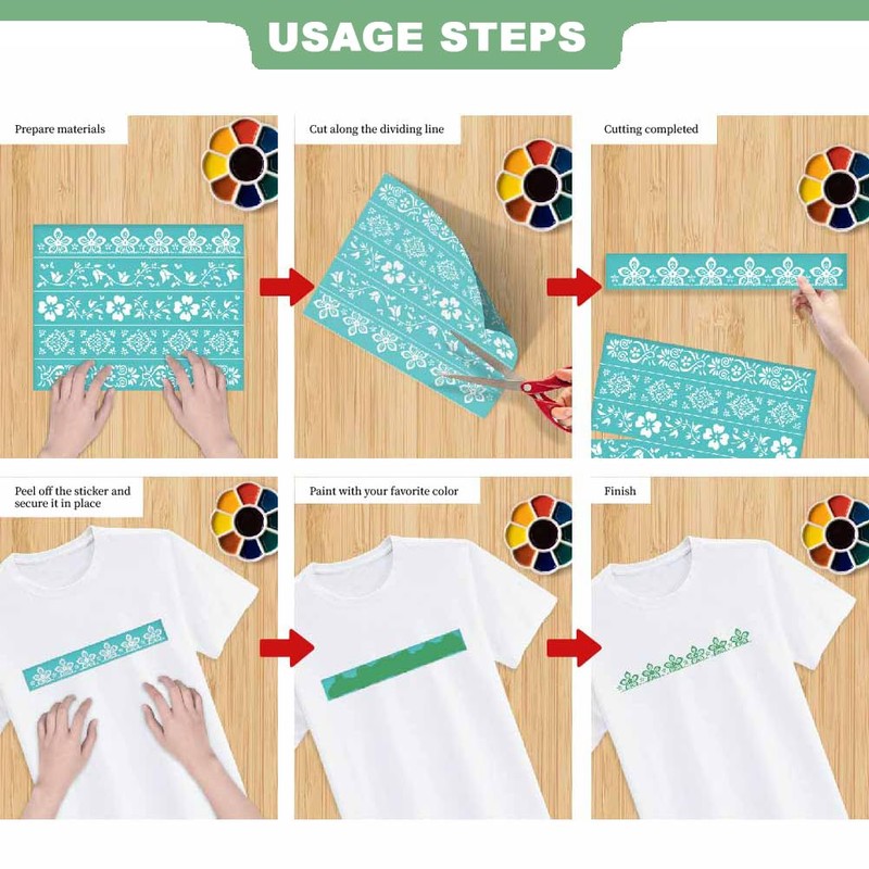 - Easy to Use: The back of this printing stencil is designed with an adhesive backing, remove the stencil and stick it to the surface of the object to be coloured, making sure that they are fully bonded. Then apply the colour to the patterned area. Once you have finished printing, simply remove the stencil, wash it with water and put it back in place, very easy to do