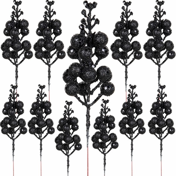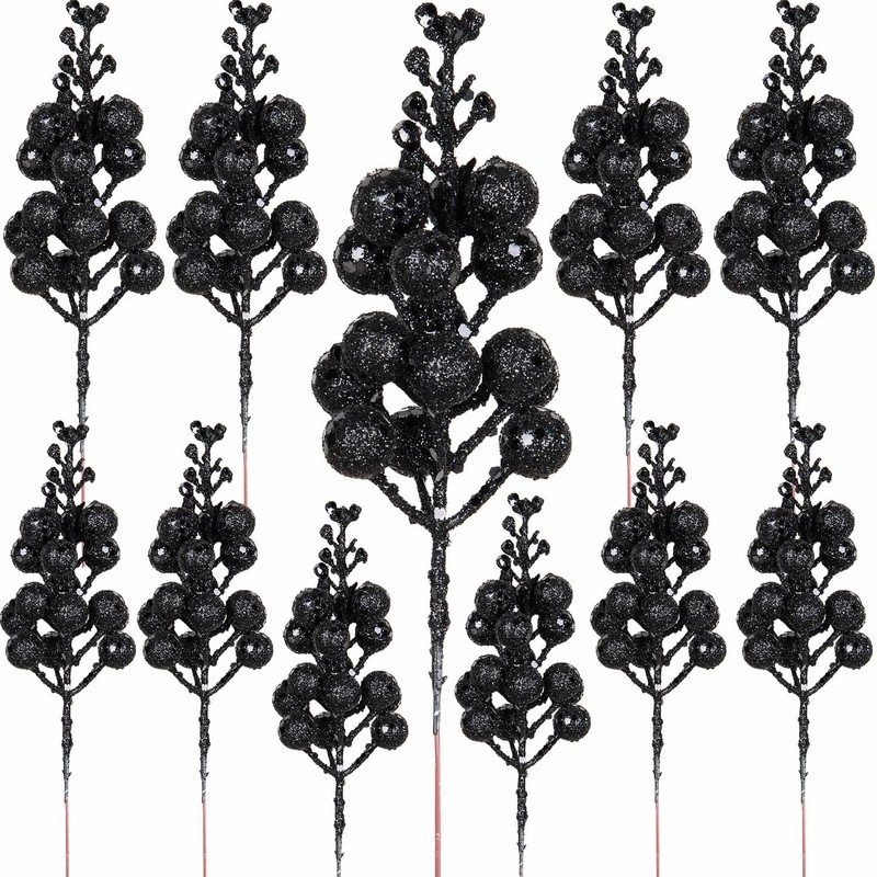 Gomat 20 Pack Christmas Glitter Berries Stems, 8 Inch Champagne Artificial Christmas Picks for Christmas Tree Ornaments, DIY Xmas Wreath, Crafts, Holiday and Home Decor (Black)