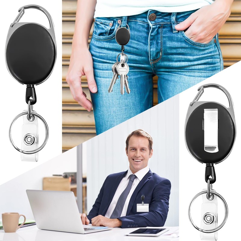 - Practical and comfortable: the carabiner hook of the retractable key ring can be securely attached to clothes, belt loops, etc., making it easier to carry. It not only offers space for keys and ID cards, but also for small tools such as nail clippers and scissors, so your small items are clear and easily accessible