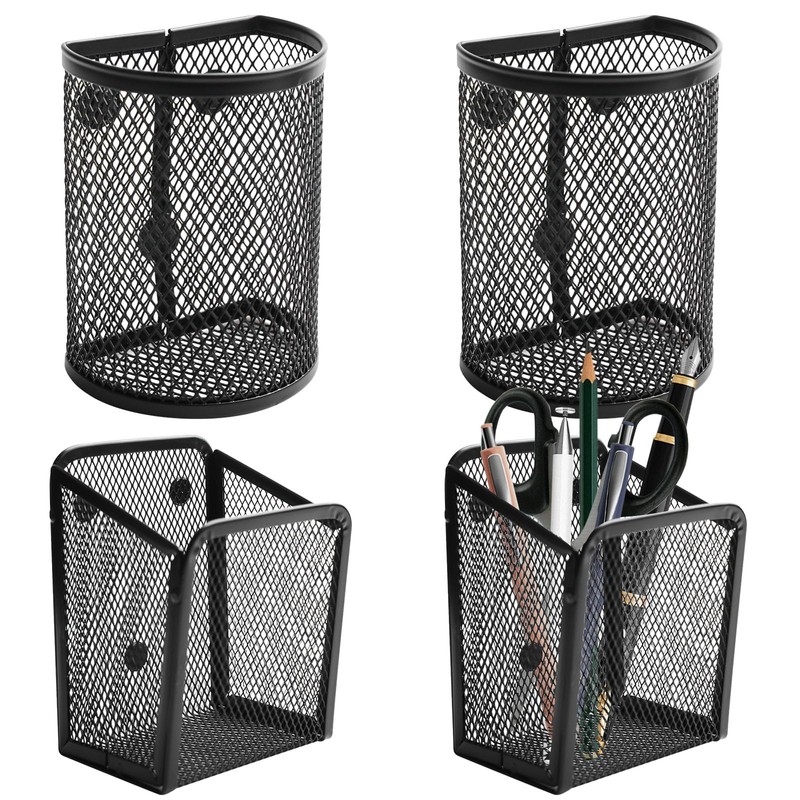 - MULTIPURPOSE You will get 2 rectangular and 2 half round magnetic pen holder mesh, fit for kitchen, workplace, office and school etc. You can use it as a pen holder, cutlery basket or small storage box for children's toys on the fridge etc