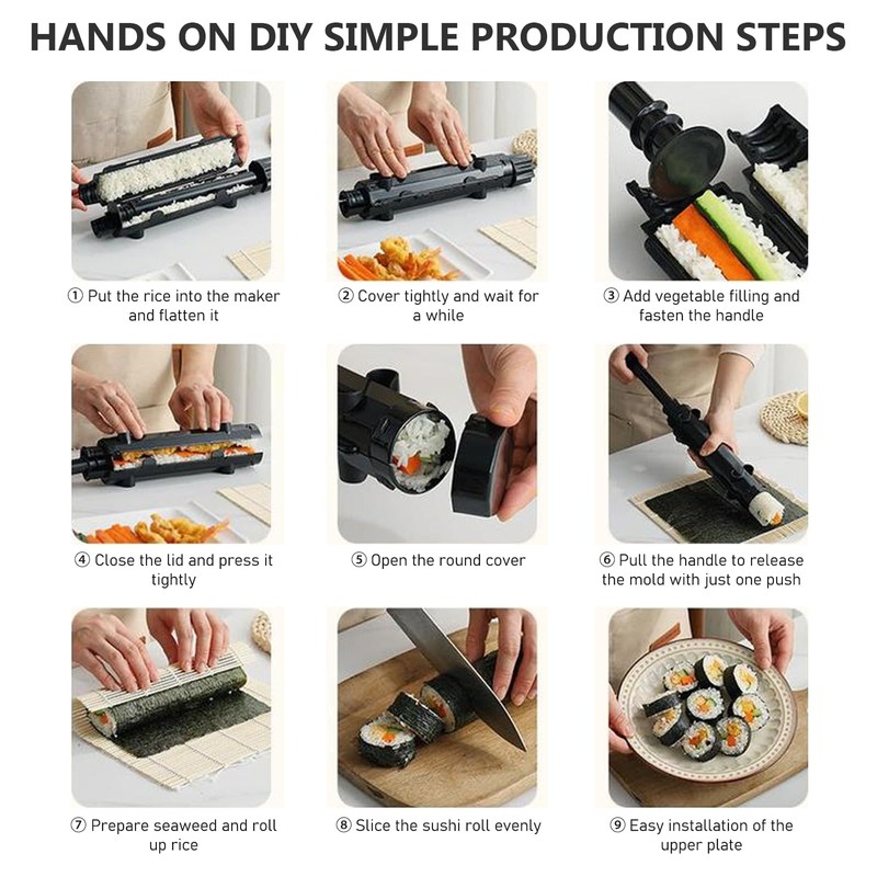 - Wide Range of Applications Our sushi maker roller set is perfectly suitable for beginners who have never prepared sushi before. The sushi set offers you more fun and wonderful interaction in the kitchen. The sushi rolling machine can improve children's practical skills and enjoy a good DIY production time