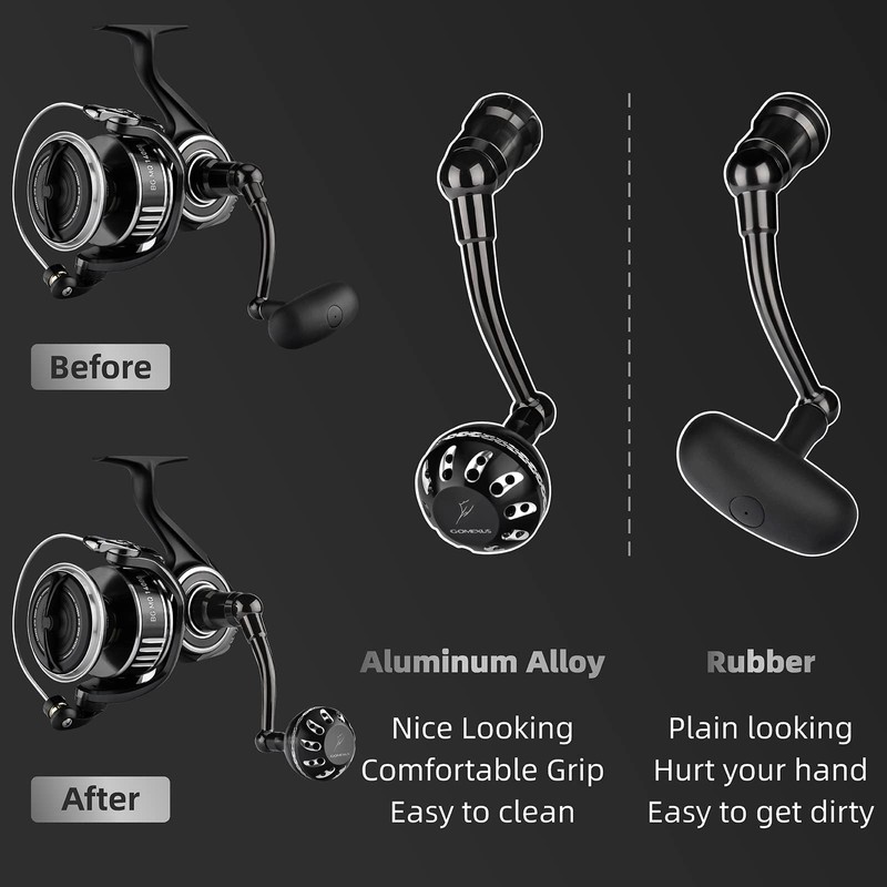 • 【More Torque】Gomexus handle is designed longer than stock handle,which provide more torque to fight.Once using,you will easily win the battle with big fish.