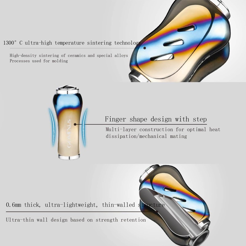 - Sintered beauty mechanics: the weight of 51 g is a functional beauty created by the fusion of the high-density sintered titanium knob and the handle. The black anodized body is baked in with indigo, gold and silver metallic colors, and the golden lines that shine between the waves create the mechanics of beauty, COMEXUS' original sintering art.