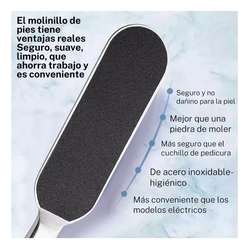 Utilice el archivo de pie de acero inoxidable para eliminar las callosidades y la piel muerta más rápido sin dañar la piel sana.