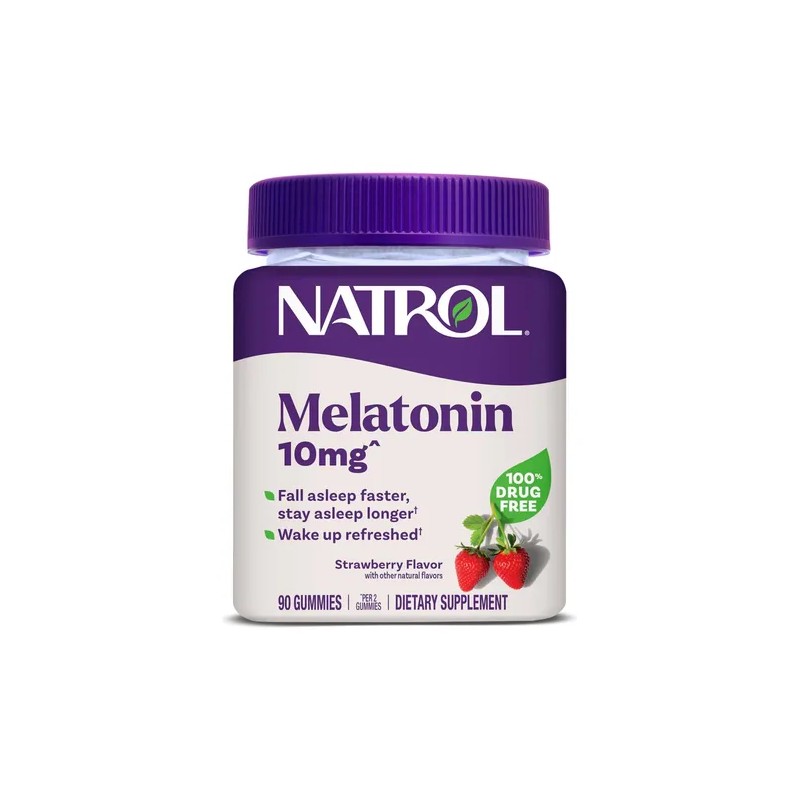 Gomitas de melatonina Natrol, Apoyo al sueño para adultos, Suplemento de melatonina de 10 mg para dormir, 90 gomitas con sabor a fresa, suministro de hasta 45 días