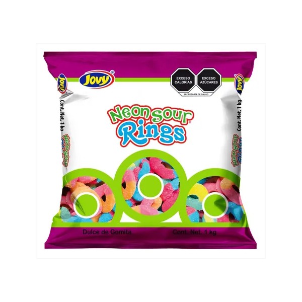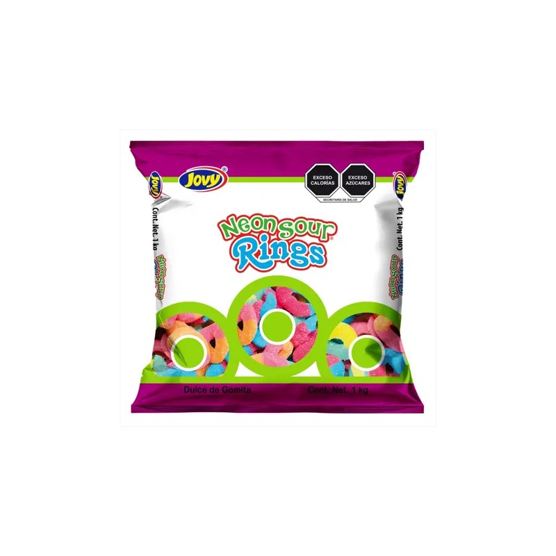 Gomitas Neon Aros Sabores Surtidos Rings Gummies Jovy De 1kg