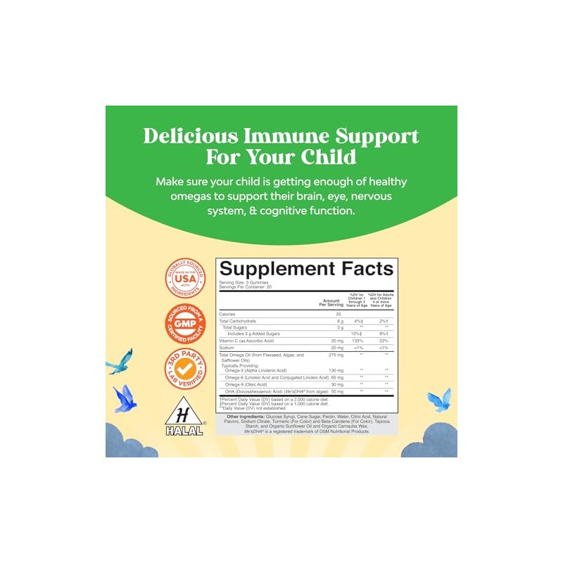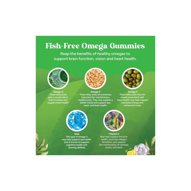 - Acerca de este artículo Omega 3 DHA para niños: Omega 3 para niños es un nutriente necesario que apoya el desarrollo saludable y nuestra fórmula de gomitas DHA omega para niños está llena de ácidos grasos esenciales para el cuidado de la cabeza a los pies Suplemento vegetariano Omega 3: nuestras gomitas omega 3 para niños están libres de gelatina y pescado, por lo que es una opción superior para tus hijos suplemento omega 3 porque empaquetamos nuestras gomitas con omega 3