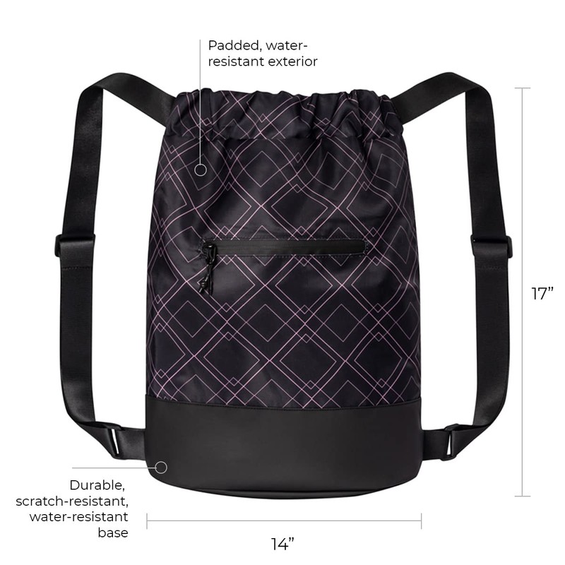 - PERFECT GYM BAG FOR WOMEN - This workout drawstring will have room for all of your gym essentials (18" x 14" x 7"). Our sports gym bags have a roomy main compartment, zipper interior and exterior pockets, and water bottle interior pocket
