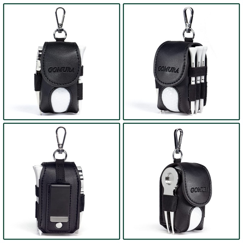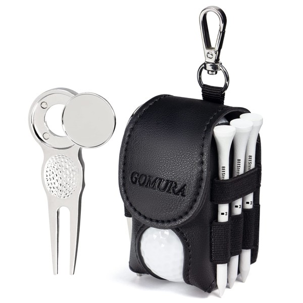 Gomura Golf Ball Case [2 Pack] Golf Ball Pouch with Green Fork and Ball Marker with Golf Tee PU Leather, black, Middle Ages