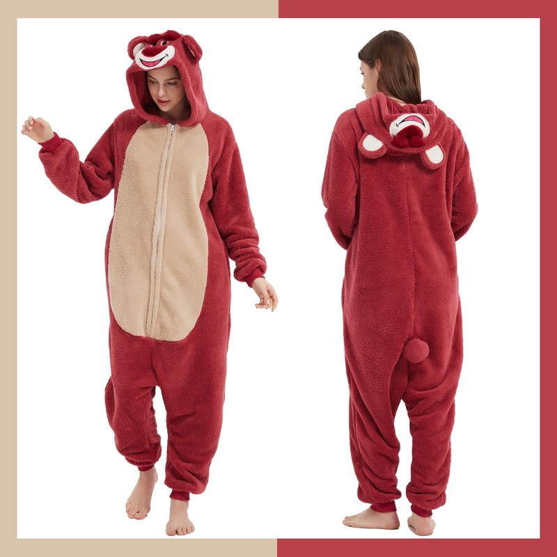 GONAAP Unisex Adult Rose Bear Onesie Pajamas Animal One Piece Costume Cosplay Sleepwear (Rose Bear, Medium)