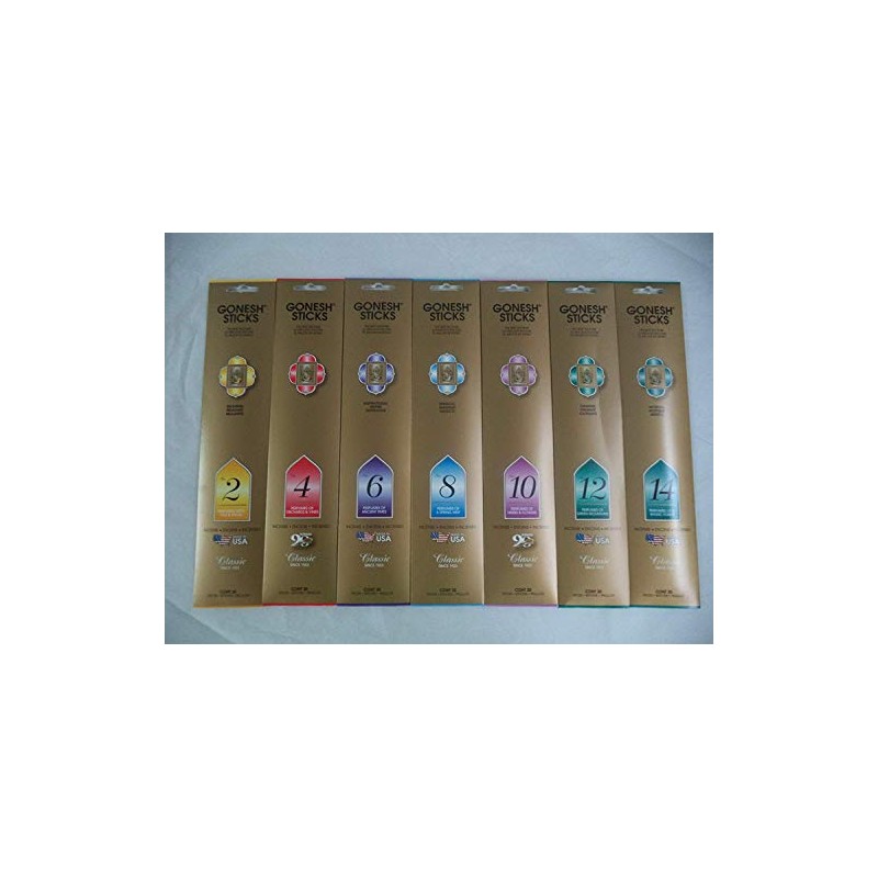 Gonesh 2 4 6 8 10 12 14 Incense Sampler 20 Sticks X 7 Packs (140 Stick)