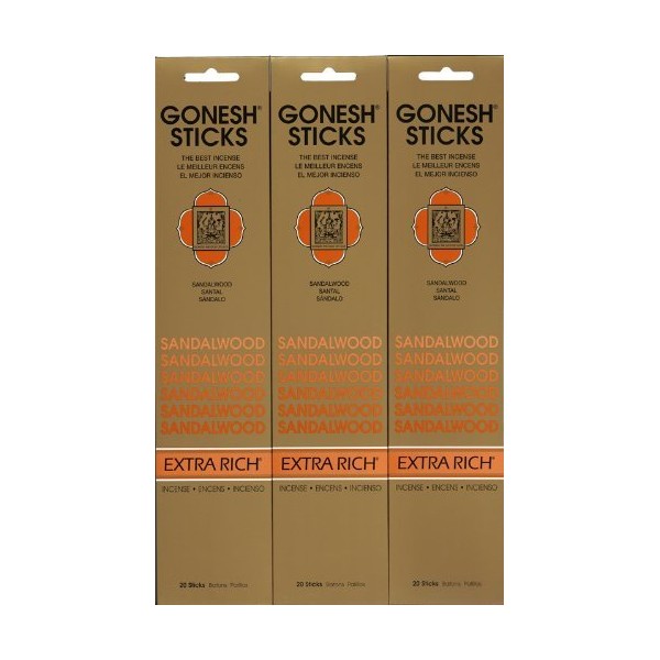 GONESH SANDALWOOD Sandalwood, 20 Count X 3 Pack (60 Count)