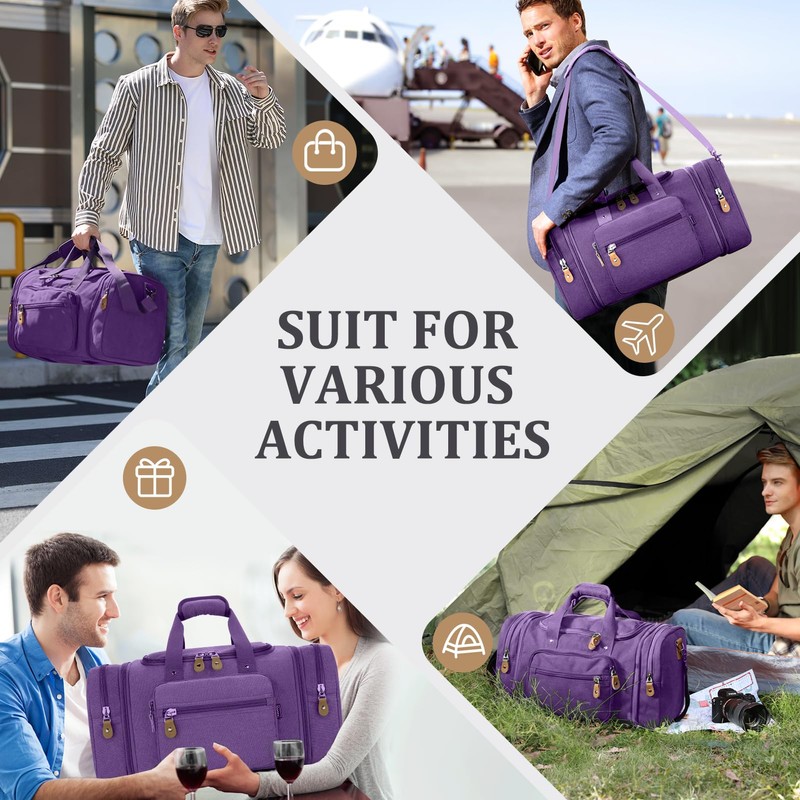 - Multipurpose: Suitable for both men and women, the Canvas Travel Duffel Bag can be used as a weekender bag, overnight bag, short-term travel bag, toiletry kit, camping bag, business bag, gym tote, carry-on luggage, or simply as an emergency bag