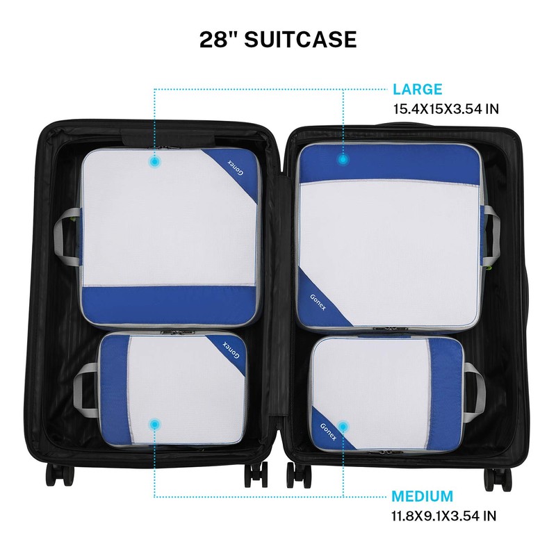 • Space-saving Design: This in-case cubes set can be condensed to compact pieces when zipped up, saving space and fitting well in 28" suitcase/luggage, more portable. Makes your packing a breeze and no more over-packing.
