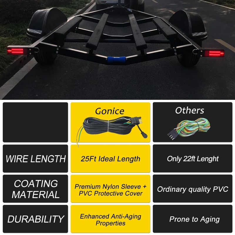 Gonice 25Ft 4 Pin Trailer Wiring Harness Kit with Black Nylon Protective Sleeve, 4 Pin 5 Wire Plug for Enhanced Durability - Wishbond Trailer Wire Kit