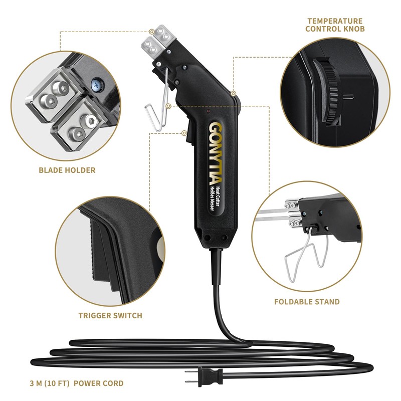 - [Stainless Steels Blades & Temp Control] GONYTIA 190W Hot Knife Foam Cutter has chosen a brand new blade manufacturing material. The stainless steels Blade heats up faster and cuts through the foam more smoothly. The GONYTIA Hot Knife can heat up to the working temperature in seconds. There are 16 levels of adjustment to control temperature and power. It ensures proper temperature for any job.