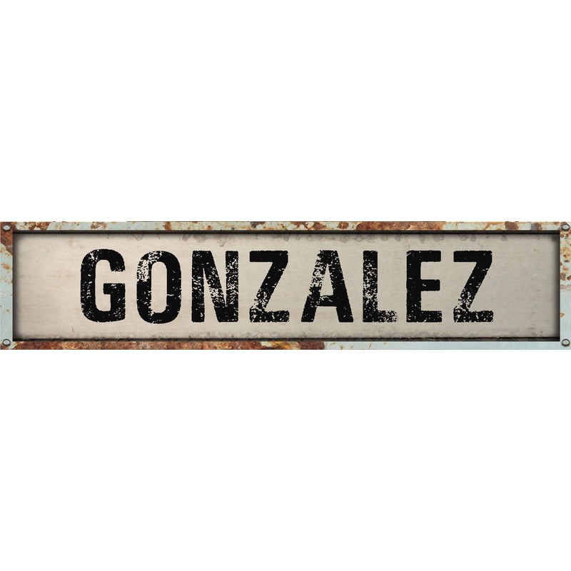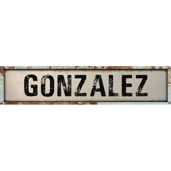 Gonzalez 8" Rectangle White Weathered Painted Metal Rustic Look Decal Bumper Sticker for use on Any Smooth Surface