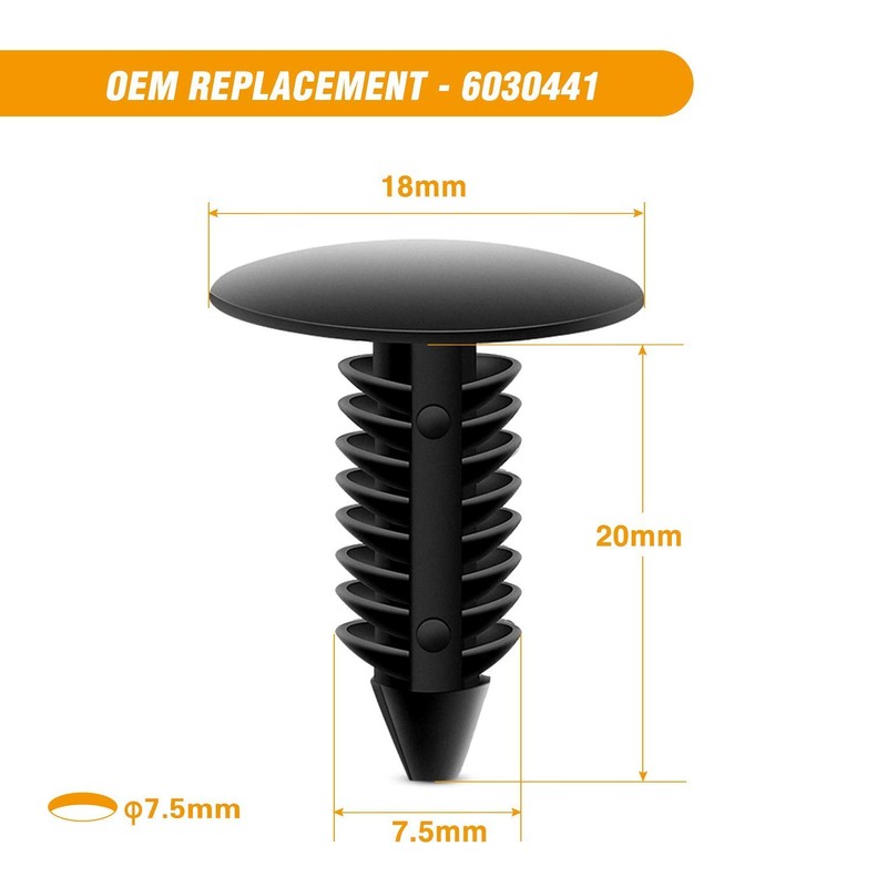 - 20 Pieces of Nylon Blind Rivets: Replaces GM: 10184895, 20452072 Ford: N803862-S, Chrysler: 6501559, 6506007-AA