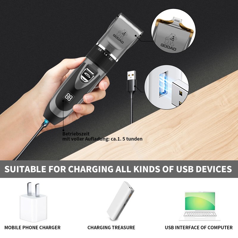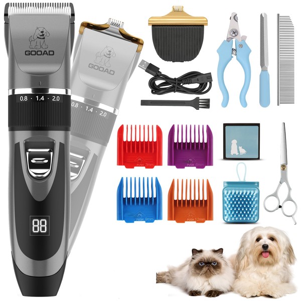 Gooad Dog Clippers Grooming Kit and Paw Trimmer,Low Noise,Electric Quiet,Rechargeable,Cordless, Pet Hair Clippers for Thick Coats,Dog Trimmer Grooming Tool,Shaver for Small and Large Dogs Cats Gray)