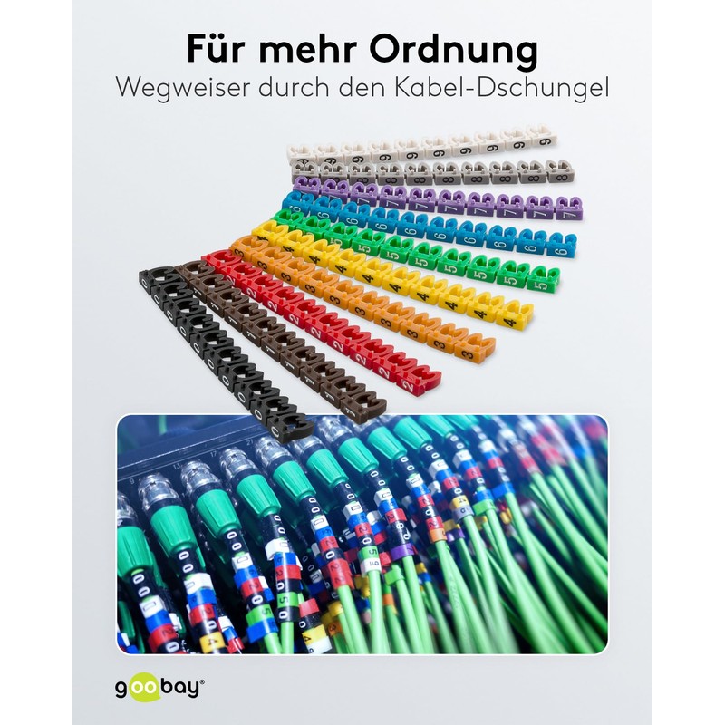 goobay 72514 Digits 0–9 Cable Marker Clip for Cable Diameters up to 4mm, Pack of 100