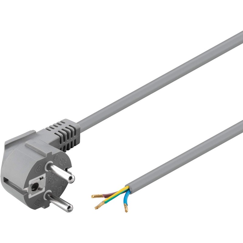 Goobay 93975 Angled Power Cable / Open Cable Ends & Pressed Wire End Ferrules / 90 Degree Protective Contact Plug / Universal Power Cable / Grey / 1.5 m