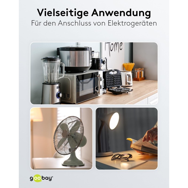 • Can be used universally and in many ways, such as connecting to appliances in the office, household and garage. For direct connection to electrical appliances such as lamps