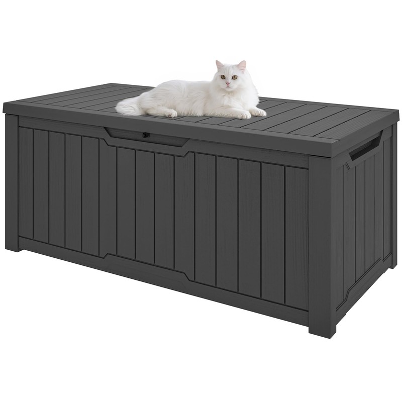 GOOBED 120-Gallon Resin Outdoor Storage Box, Waterproof Deck Box for Garden Tools, Pool Supplies, and Sports Gear, Lockable Lid, Multi-Purpose Bench or Table, Easy Assembly (Dark Gray)