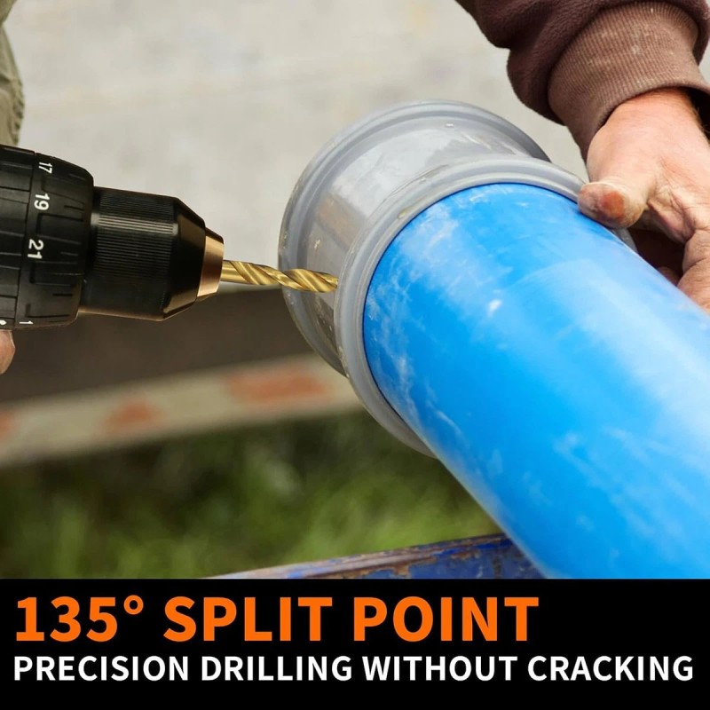 【135° High-Speed Steel (HSS) Construction】Made from high-speed steel, these drill bits are built to withstand high temperatures and heavy-duty use. The 135° split point tip design allows for faster, more precise drilling with less effort and reduced walking or slipping.