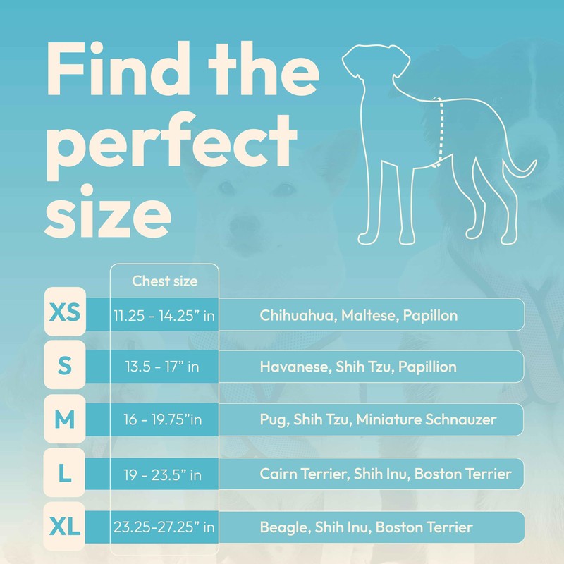 - Choke-Free Comfort X Design – Patented V-neck X-frame distributes pressure across the chest instead of the neck, reducing the risk of injury for small dogs.