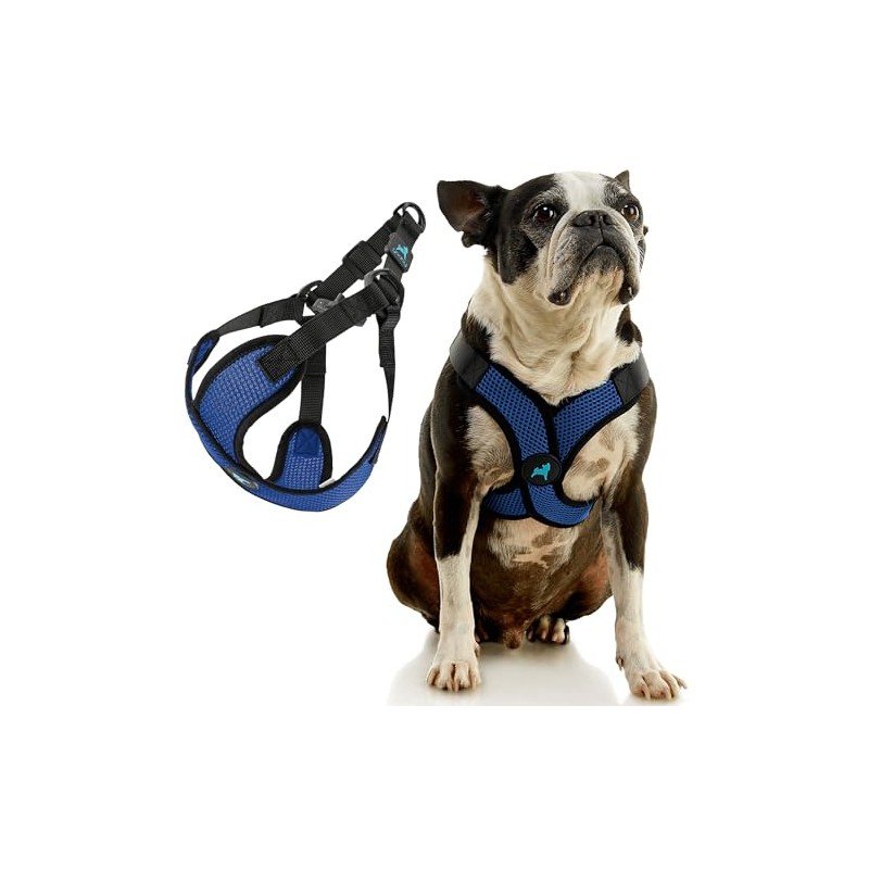 Gooby Comfort X Step in Lite Dog Harness - Choke Free, Escape Free with Light Breathable Mesh - Step in Dog Harness for Small and Medium Dogs - Quick Release Buckle, Metal D-Rings - Blue, Small