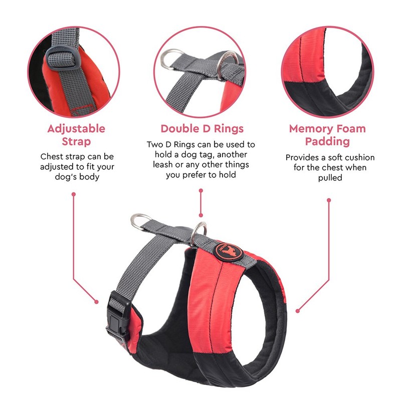 Gooby - Memory Foam Head-in Harness, Small Dog Fleece Lined Harness with Memory Foam Padding, Red, X-Small