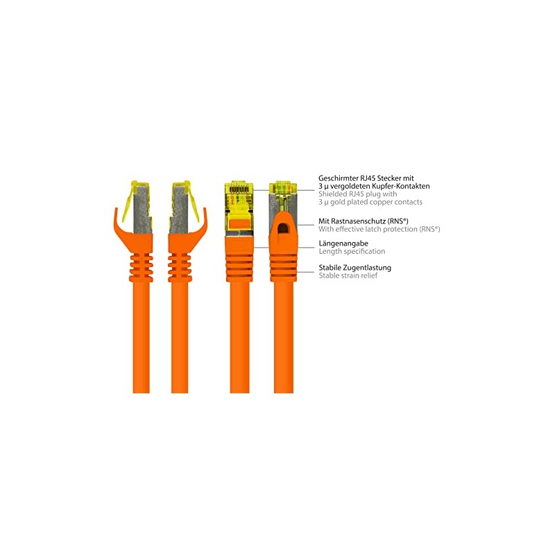 - The RJ45 patch cable with Cat. 7 raw cables from Good Connections with effective latch protection (RNS) is 10 Gigabit capable (10/100/1000/10000-Base-T Ethernet networks) and therefore suitable for all network connections