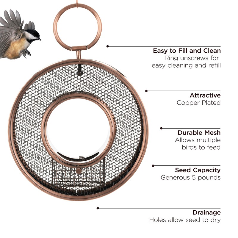 Good Directions 0111VBM Just in Time Fly-Thru™ Copper Bird Feeder, Wild Bird Feeder, Durable Mesh Panels, Easy-to-Fill