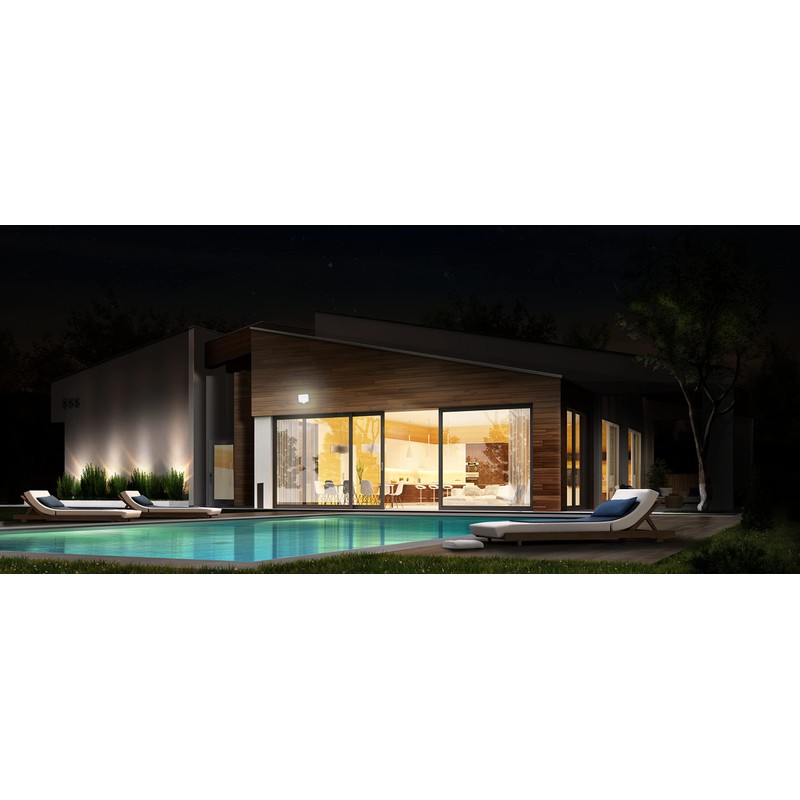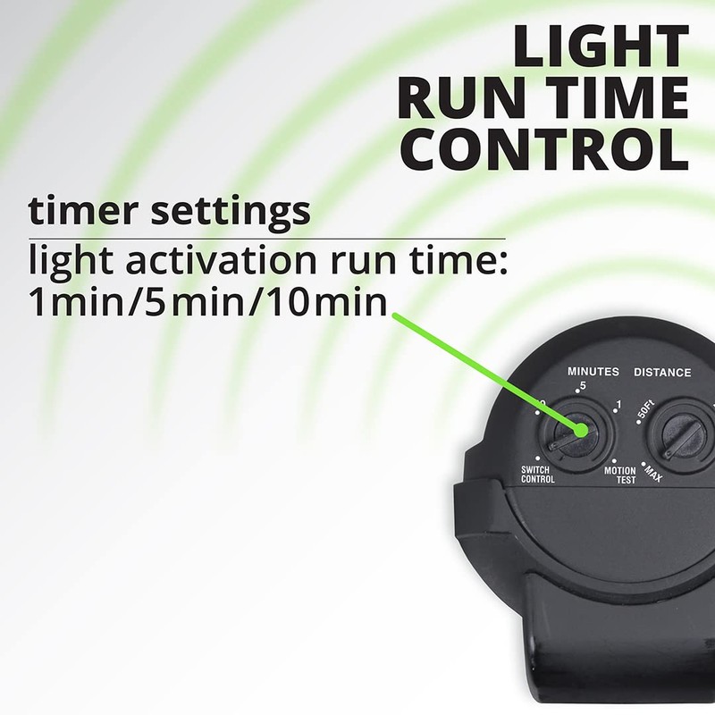 - MOTION ACTIVATED:180-Degree motion sensor lights detect motion up to 100 ft. with multiple motion sensor timer settings that provide extra security. Wall-or eave-mounted for greater flexibility.