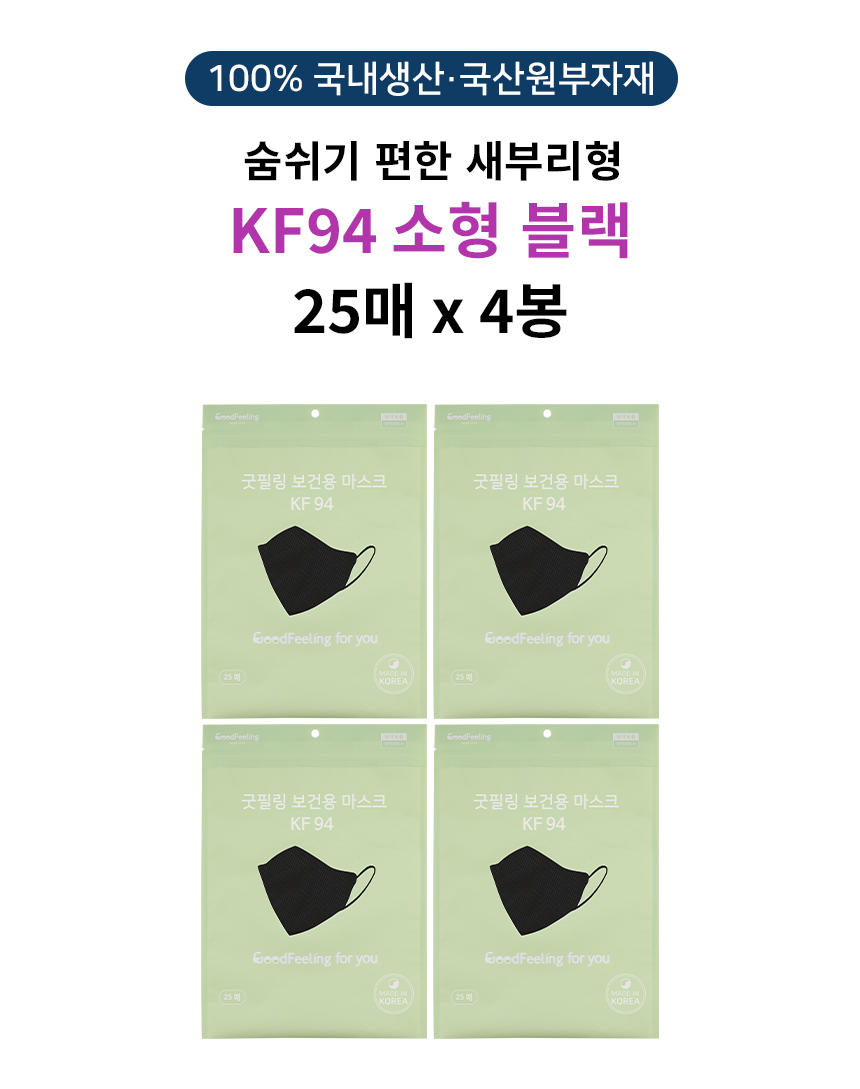 Good Feeling Color Bird Beak Mask KF94 Small Black 25 Sheets x 4 Bags / 굿필링 컬러 새부리형 마스크 KF94 소형 블랙 25매x4봉