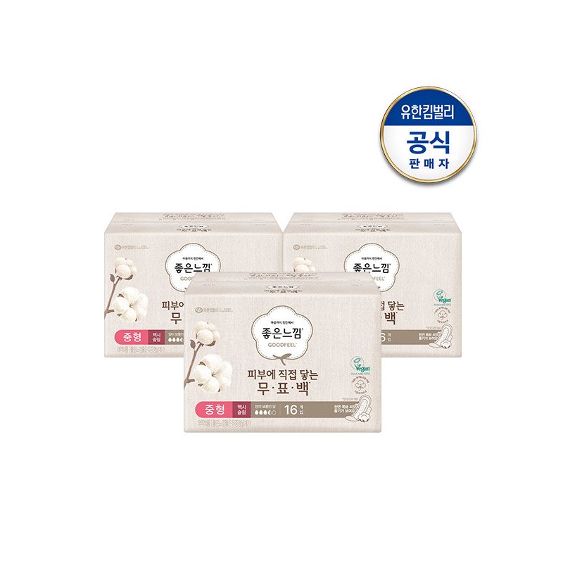 Good feeling, non-bleaching medium size 16 sheets x 3 packs that come in direct contact with the skin + (increased) non-bleaching lipstick 2P / 좋은느낌 피부에 직접 닿는 무표백 중형 16매x3팩+(증)무표백입오버2P